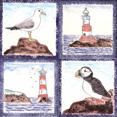 Seabird and lighthouse tiles